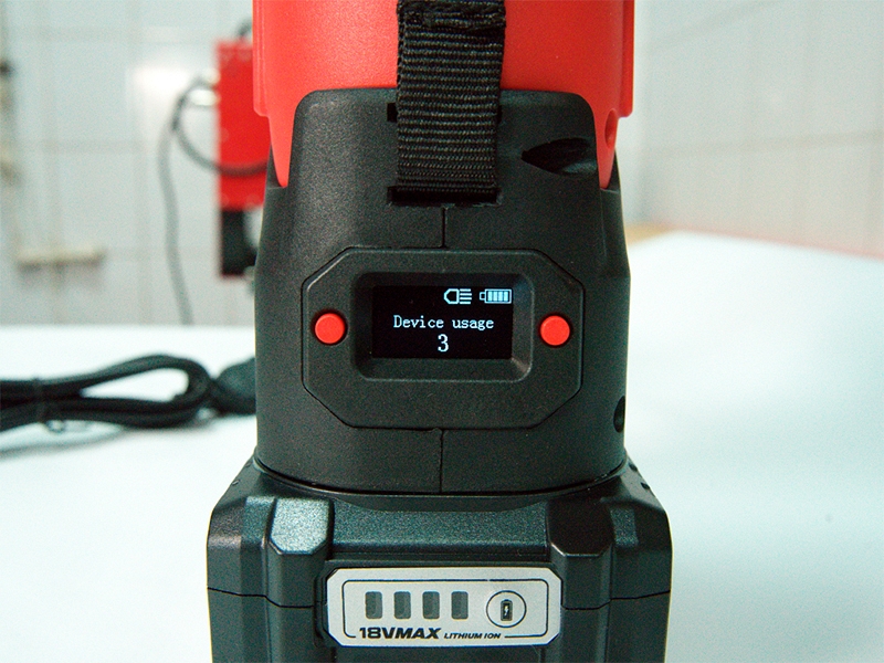 - OLED-дисплей данных для отображения процента заряда батареи, времени нажатия, кода неисправности