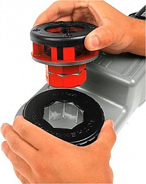 - Быстросменная резьбонарезная головка с надежным креплением для ручных резьбонарезных трубных клуппов Super Cut, электрических резьбонарезных трубных клуппов Supertronic 1250 и 2000